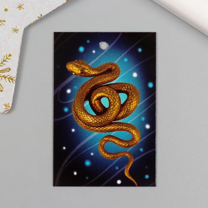 Бирка для подарков, цветов «Золотая змея», картон, 4×6 см — Характеристики