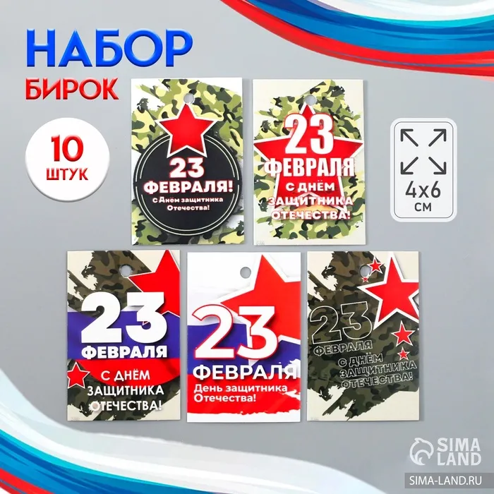 Бирка картон «23 февраля» набор 10 шт., 5 видов, 4×6 см — Характеристики