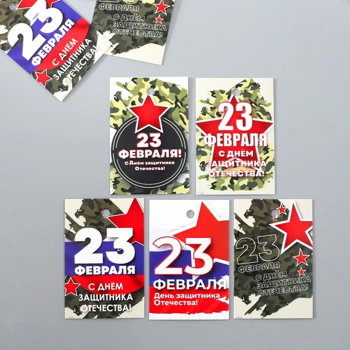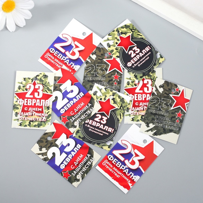 Бирка картон «23 февраля» набор 10 шт., 5 видов, 4×6 см