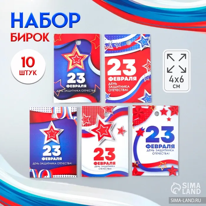 Бирка картон «23 февраля. Звёзды», набор 10 шт., 5 видов, 4×6 см — Характеристики