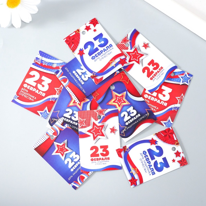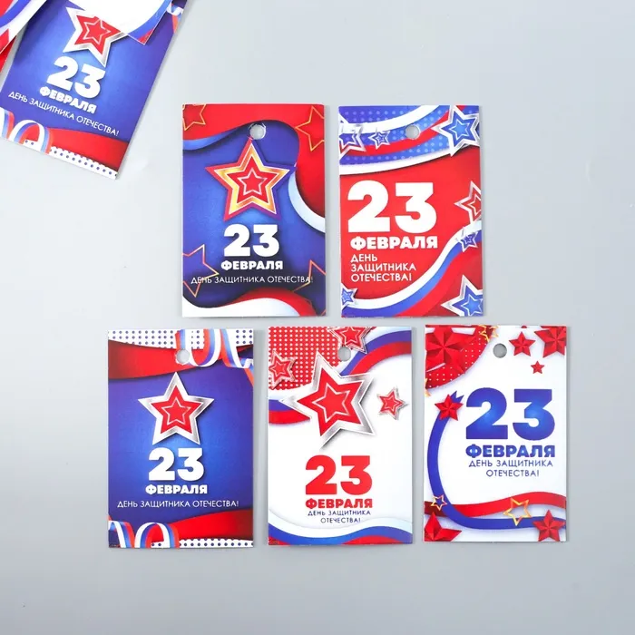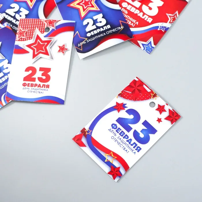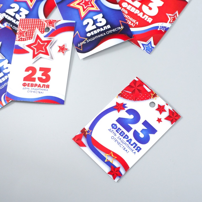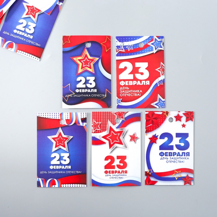 Бирка картон «23 февраля. Звёзды», набор 10 шт., 5 видов, 4×6 см