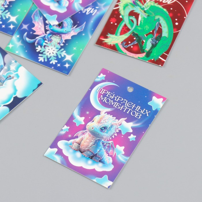 Бирка картон "Дракон. Пожелания" набор 10 шт (5 видов) 4х6 см
