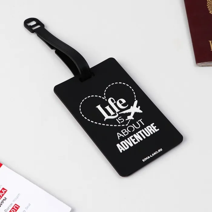 Бирка на чемодан резиновая «Life is about adventure», черная