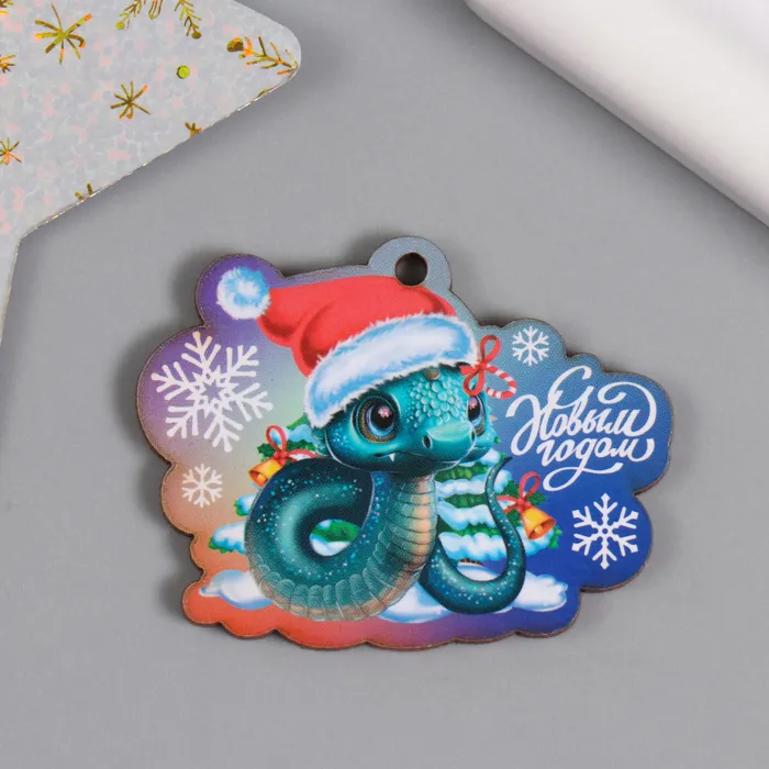 Бирка-подвеска «Змейка. С Новым годом: ёлочная игрушка», заготовка для творчества, 5.2×4 см — Характеристики