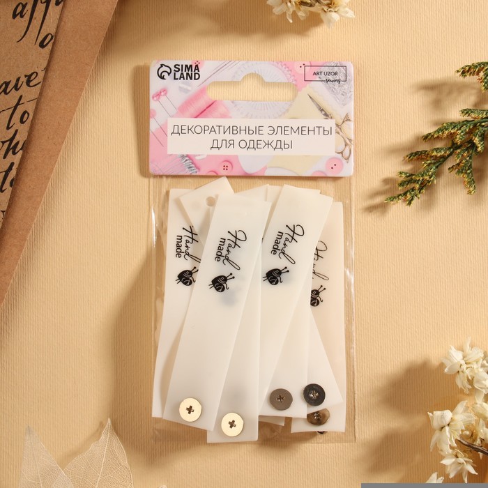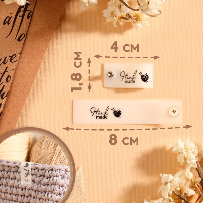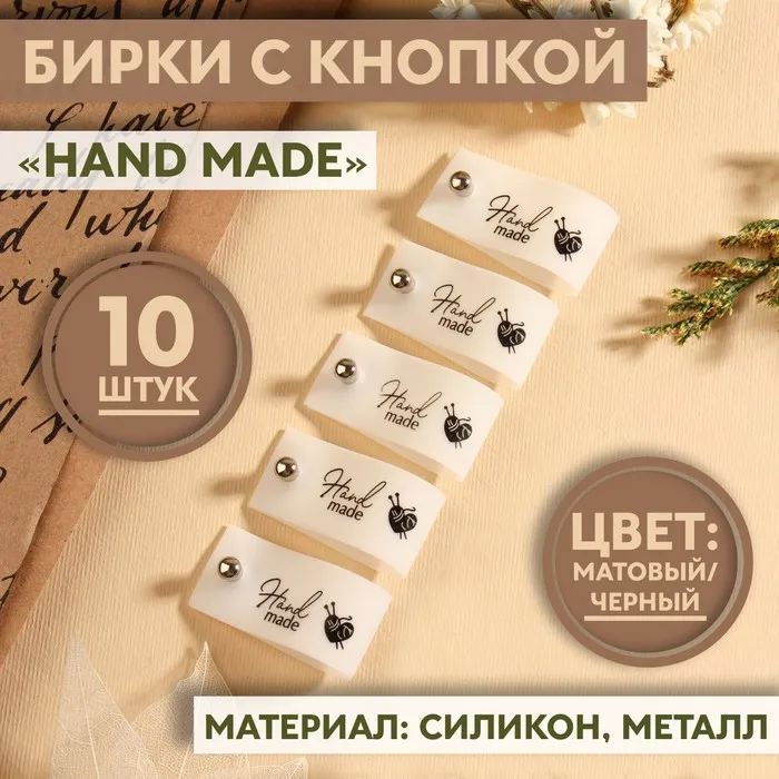 Бирка с кнопкой Hand made, 8×1.8 см, 10 шт., белая, чёрная — Характеристики