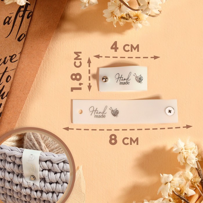 Бирка с кнопкой Hand made, 8×1.5 см, 10 шт., бежевая