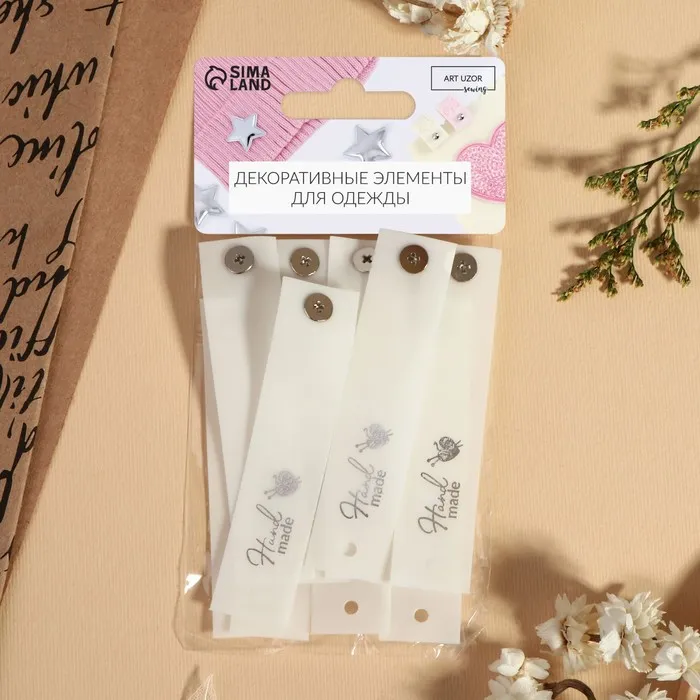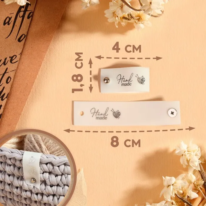 Бирка с кнопкой Hand made, 8×1.8 см, 10 шт., цвет серебряный, белый — Характеристики