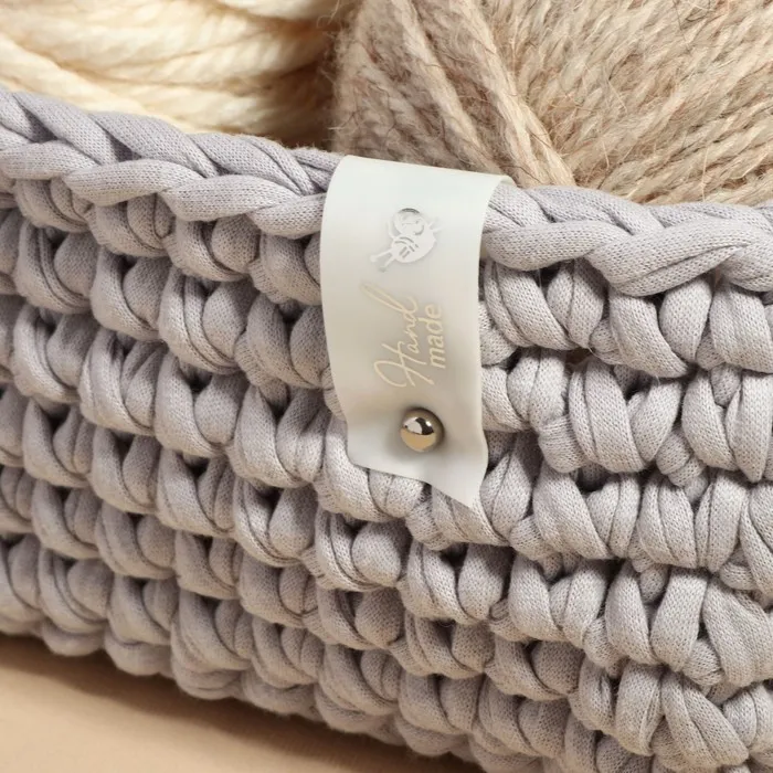 Бирка с кнопкой Hand made, 8×1.5 см, 10 шт., серая
