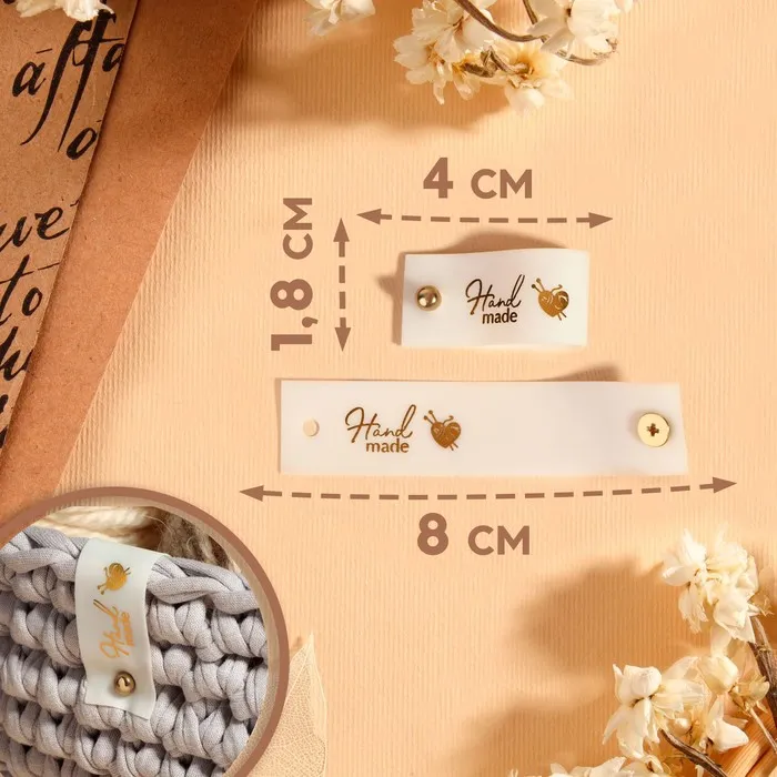 Бирка с кнопкой Hand made, 8×1.8 см, 10 шт., цвет золотой, белый — Характеристики