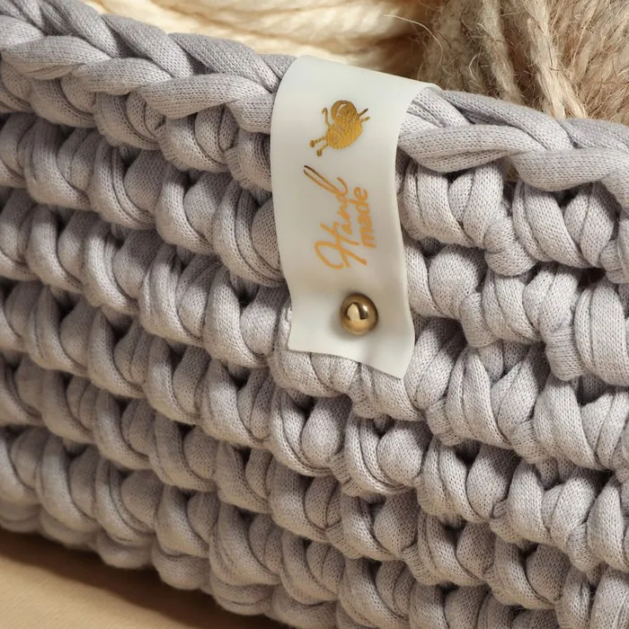 Бирка с кнопкой Hand made, 8×1.5 см, 10 шт., серая