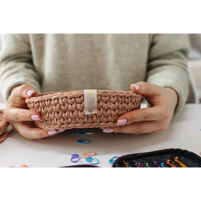 Бирка с кнопкой «Ручная работа», 8×1.5 см, 10 шт., белая, чёрная