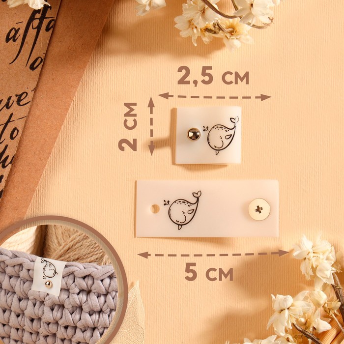 Бирка с кнопкой «Кит», 5 × 2 см, 10 шт, цвет белый/чёрный — Характеристики