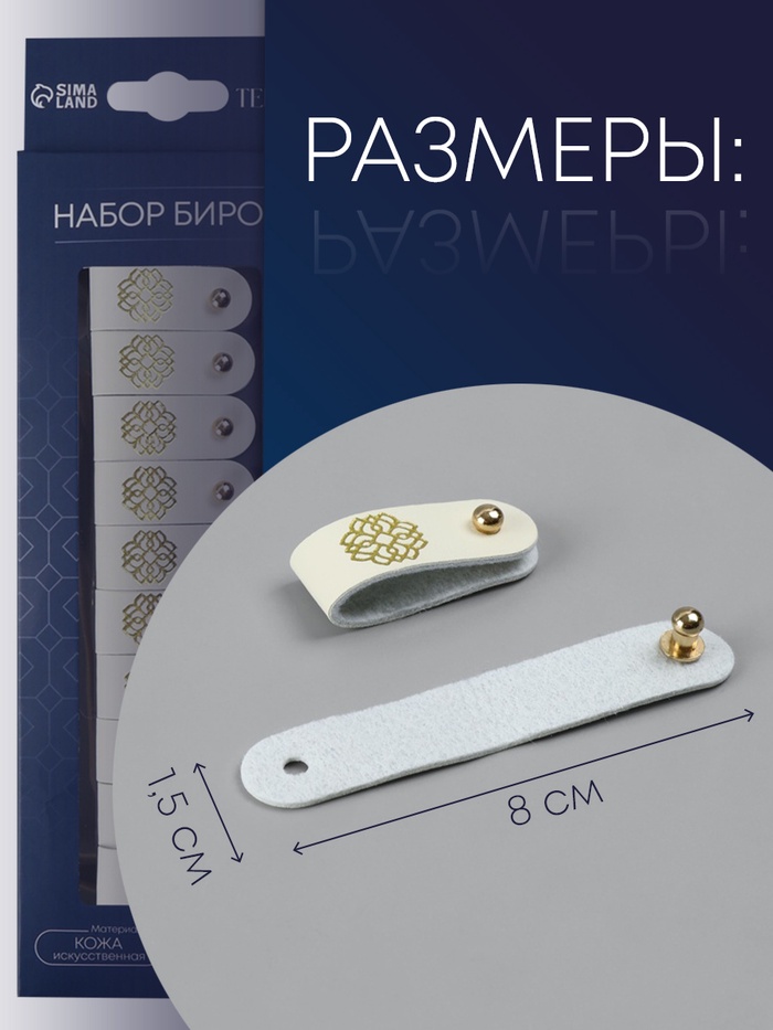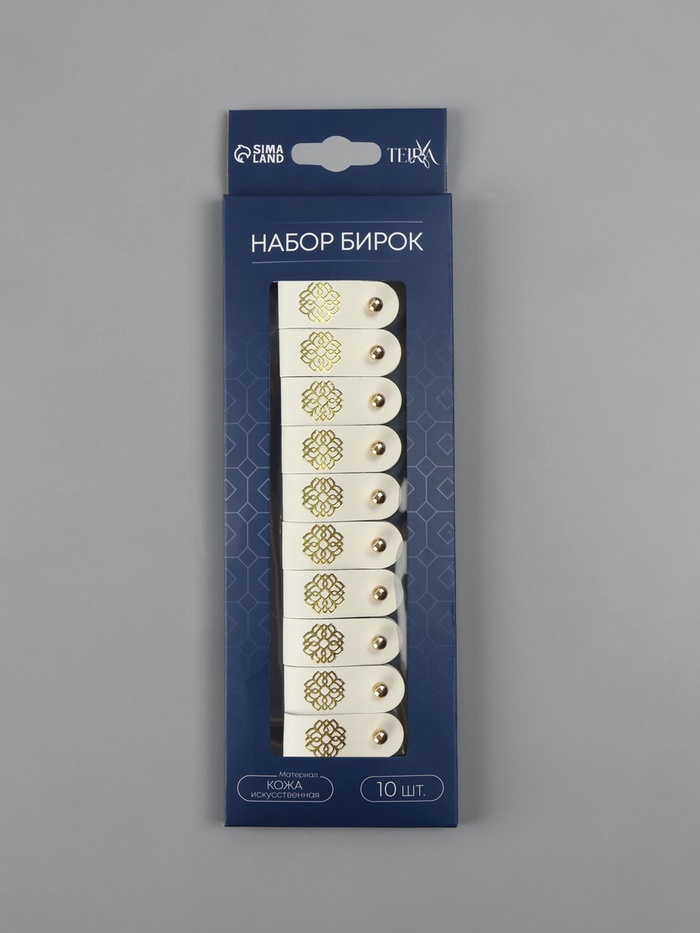 Бирка с кнопкой «Мандала» TEIRA, с тиснением, 8×1.5 см, 10 шт., цвет золотой, молочный — Характеристики
