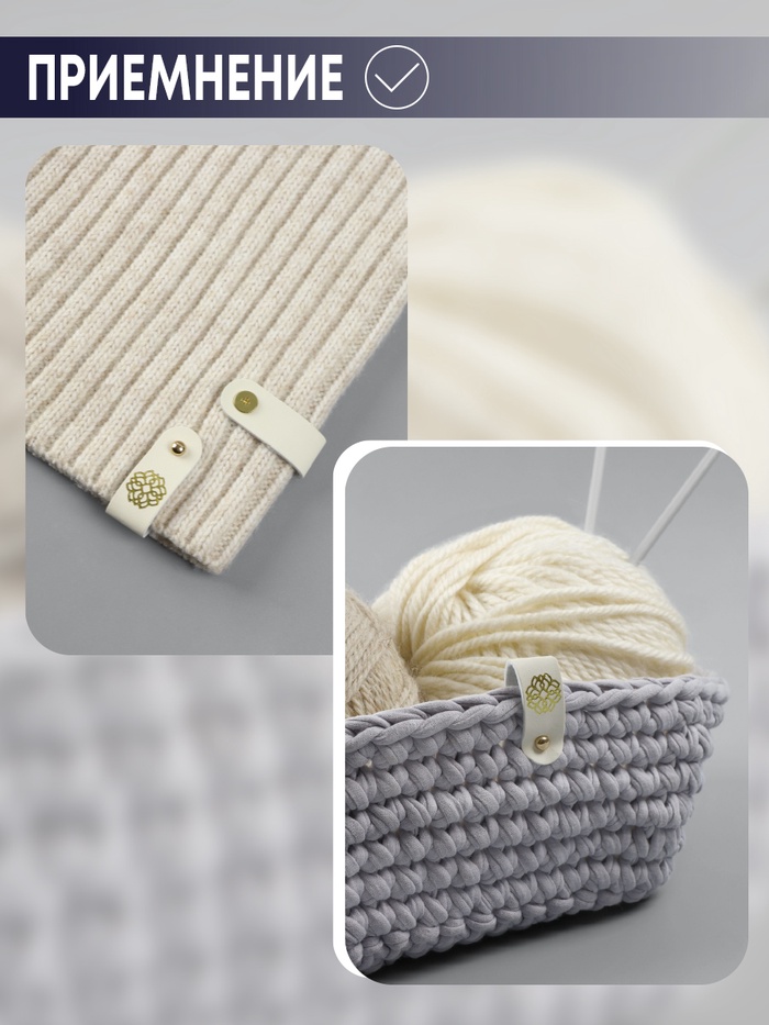 Эксклюзивный декор для ваших изделий — бирки с кнопкой «Мандала» из молочно-белой искусственной кожи с золотым тиснением создают эффект роскошной отделки. Узор в виде священного символа добавляет глубину и смысл рукодельным работам.