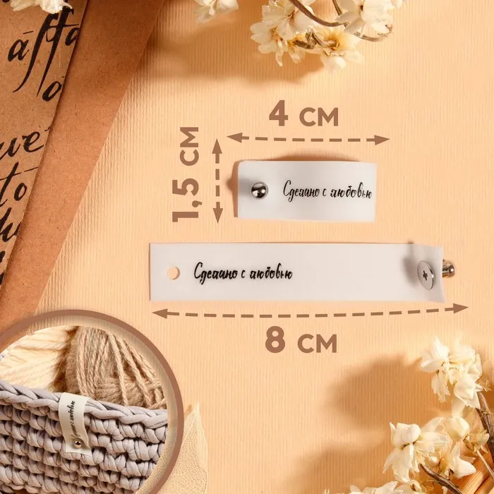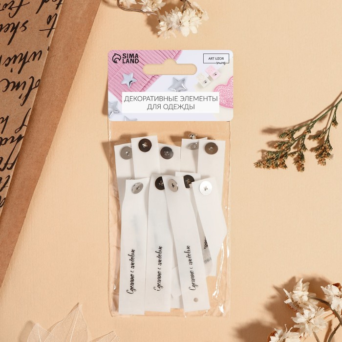 Бирка с кнопкой «Сделано с любовью», 8×1.5 см, 10 шт., белая, чёрная — Характеристики