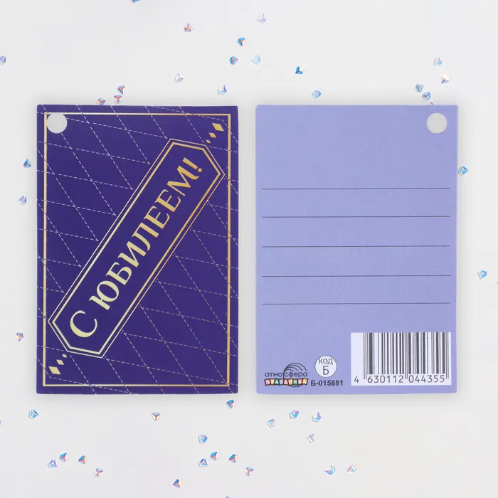 Бирка-шильдик «С Юбилеем» софт-тач, сиреневый фон, 8×5.5 см — Характеристики