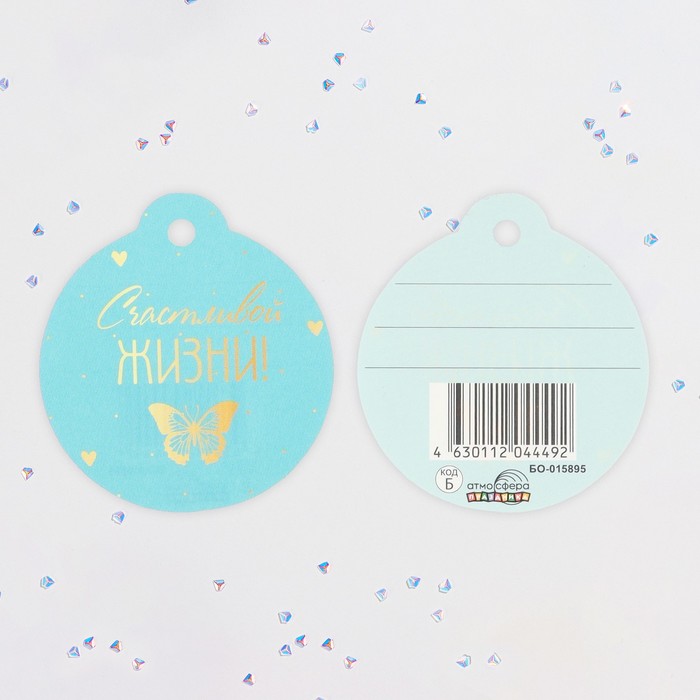 Бирка-шильдик «Счастливой жизни!» софт-тач, голубой фон, 8×5.5 см — Характеристики