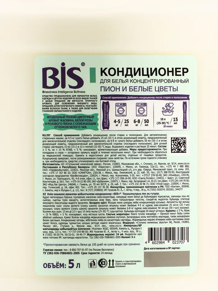 BIS Кондиционер для белья «Пион и белые цветы» — свежесть цветущего сада в каждом касании!