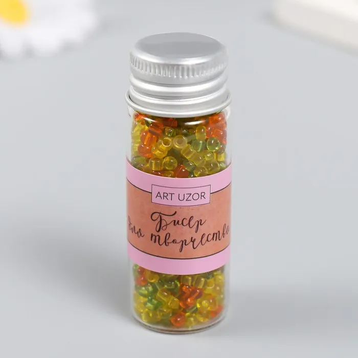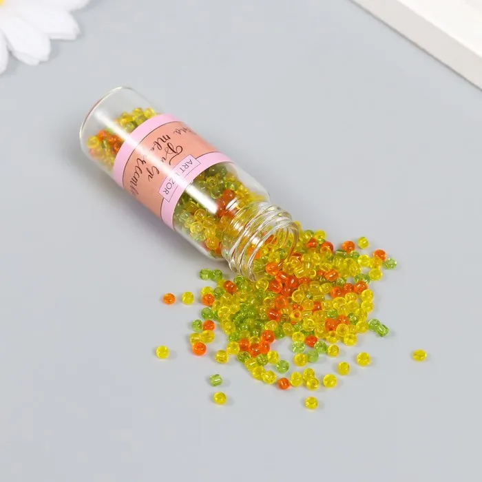 Бисер 8/0 в бутылочке «Полупрозрачный с . цв. серединой. Осень», светится под УФ 20 г, 6×2×2 см — Характеристики