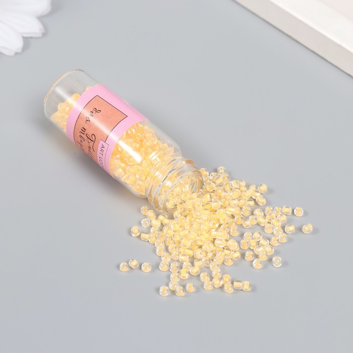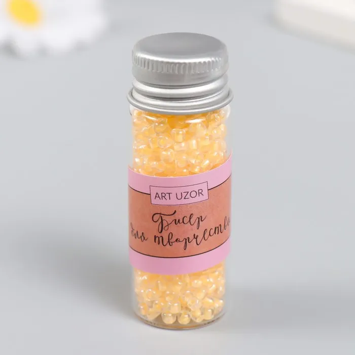 Бисер 8/0 в бутылочке «Полупрозрачный с цв. серединой. Персик», светится под УФ 20 г, 6×2×2 см — Характеристики