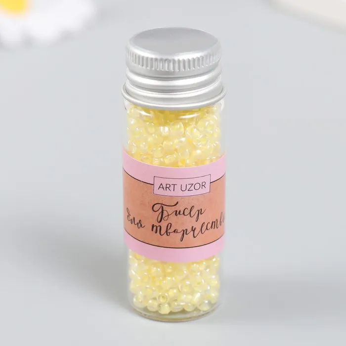Бисер 8/0 в бутылочке «Полупрозрачный с . цв. серединой. Пудра», светится под УФ 20 г, 6×2×2 см — Характеристики