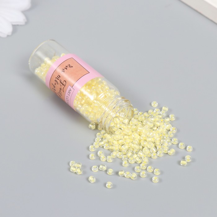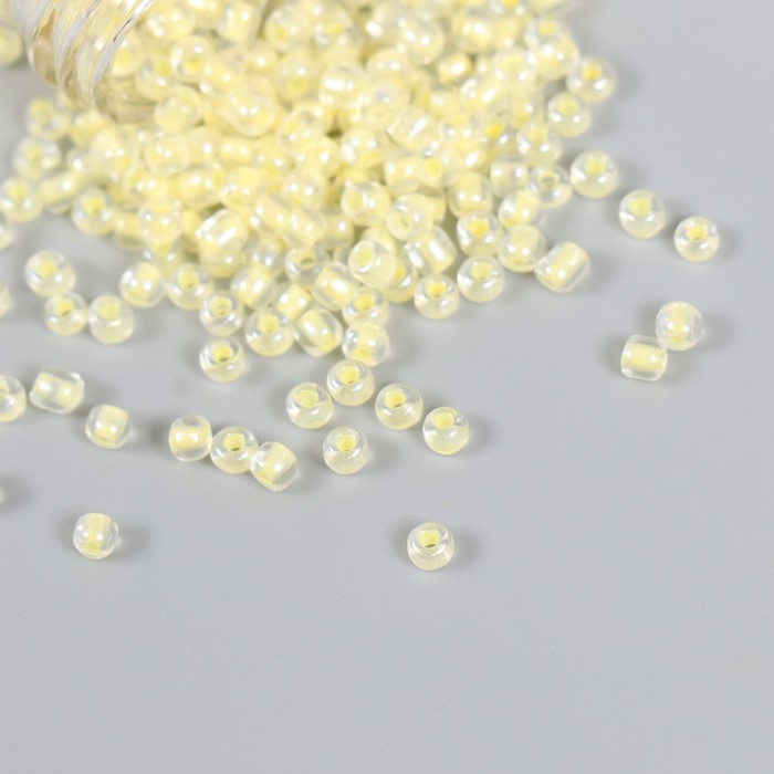 Бисер 8/0 в бутылочке «Полупрозрачный с . цв. серединой. Пудра», светится под УФ 20 г, 6×2×2 см