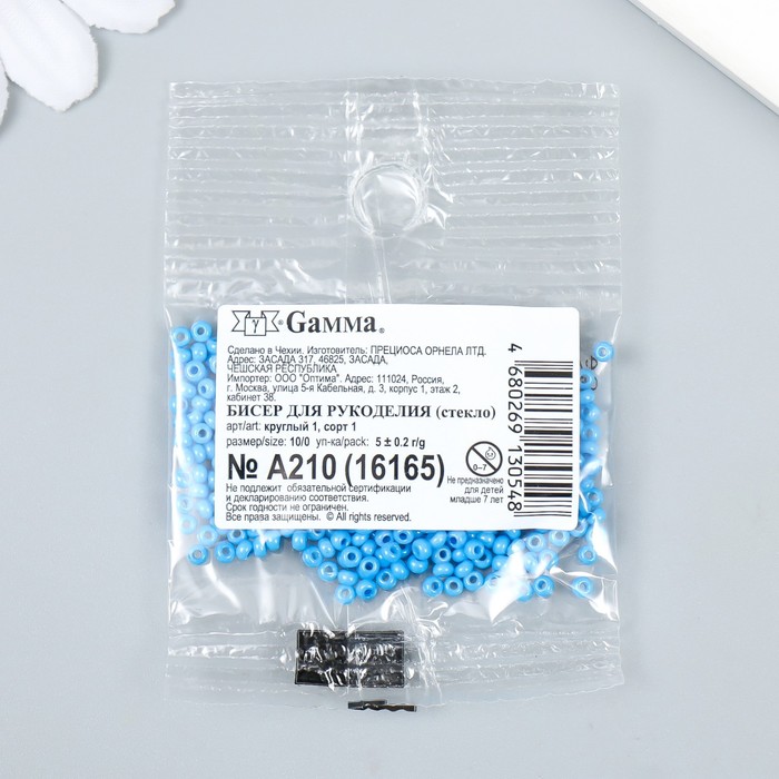Бисер Чехия "GAMMA" круглый "1" 10/0 5гр (A210 голубой) МИКС — Характеристики
