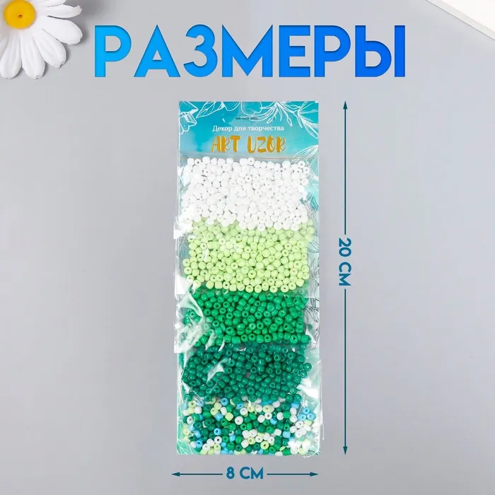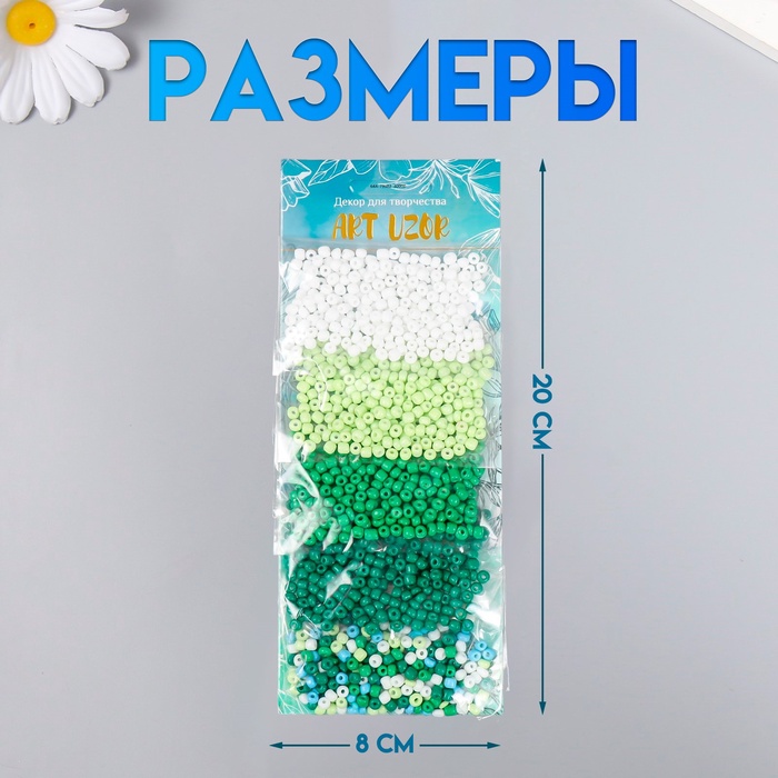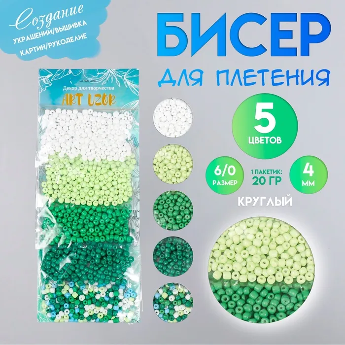 Бисер для плетения круглый 6/0 «Арт Узор. Такой разный зелёный», набор 5 цветов × 20 г, для рукоделия, 20×8×0.7 см — Характеристики