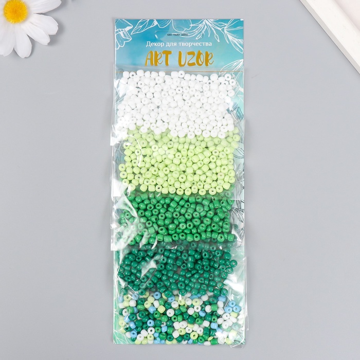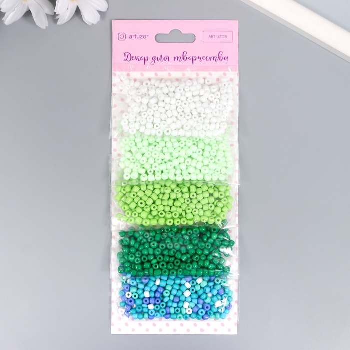 Бисер для плетения круглый 6/0 «Арт Узор. Такой разный зелёный», набор 5 цветов × 20 г, для рукоделия, 20×8×0.7 см