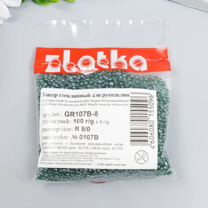 Бисер для плетения Zlatka, 08/0, 100 г, т.зелёный — Характеристики