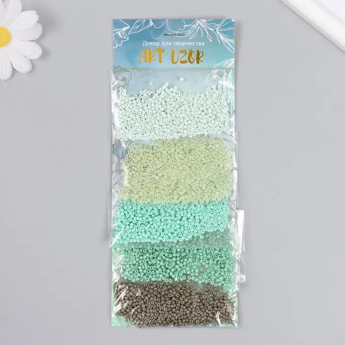 Бисер круглый 12/0 «Утро в саду», 5 цветов × 10 г, 20×8×0.7 см — Характеристики