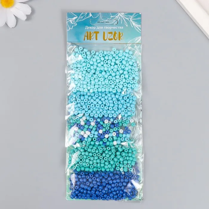 Бисер круглый 6/0 «Голубая палитра», 5 цветов × 20 г, 20×8×0.7 см