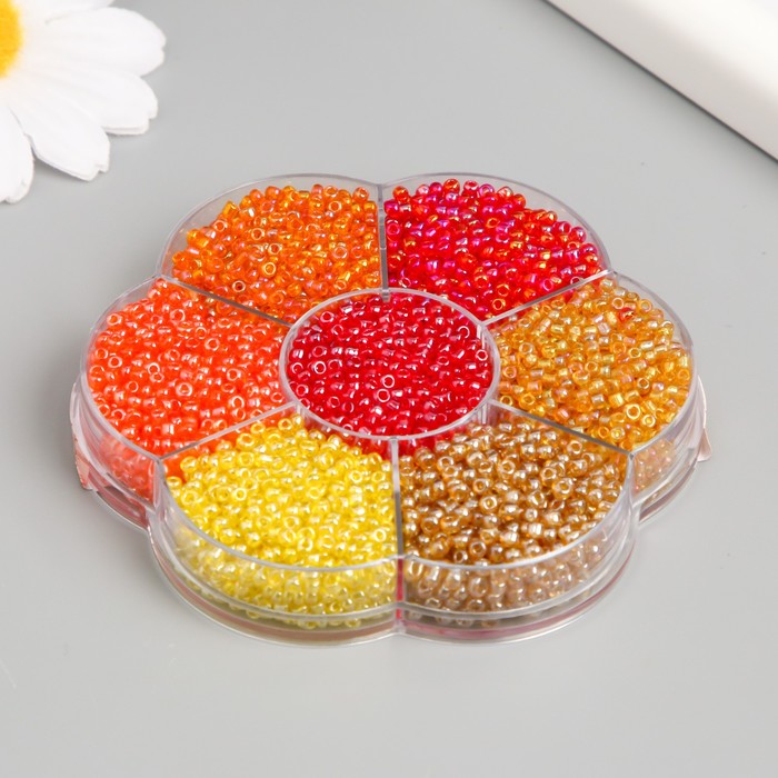 Бисер стекло 12/0 в цветке «Палитра красного», перелив. перламутр 7 цветов × 8 г, 8.2×8.2×2 см 990