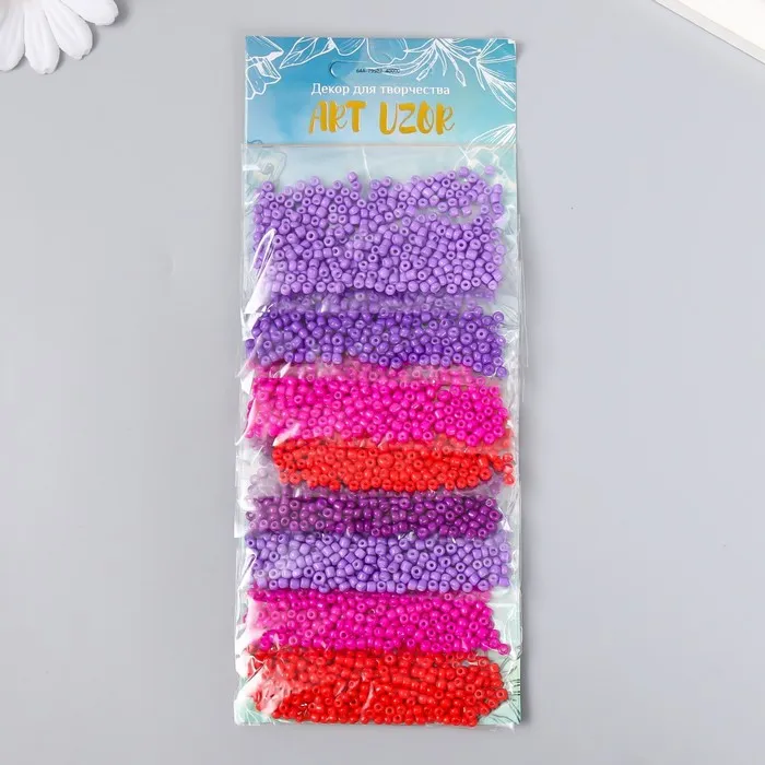 Бисер круглый 8/0 «Оттенки фиолетового», 8 цветов × 10 г, 20×8 см — Характеристики