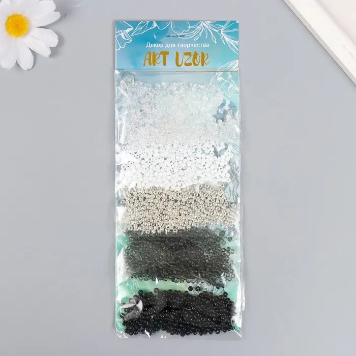 Бисер круглый «Чёрный, белый и серебро», 5 цветов × 10 г — Характеристики
