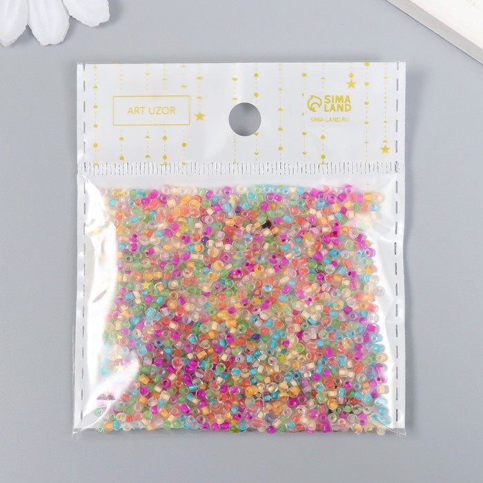 Бисер круглый размер 12/0 «Прозрачный с цветной серединкой», 20 г