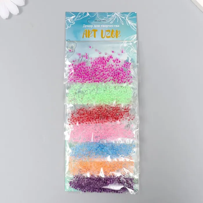 Бисер круглый размер 12/0 «Прозрачный, внутри цвет. Ассорти», 7 цветов × 5 г — Характеристики