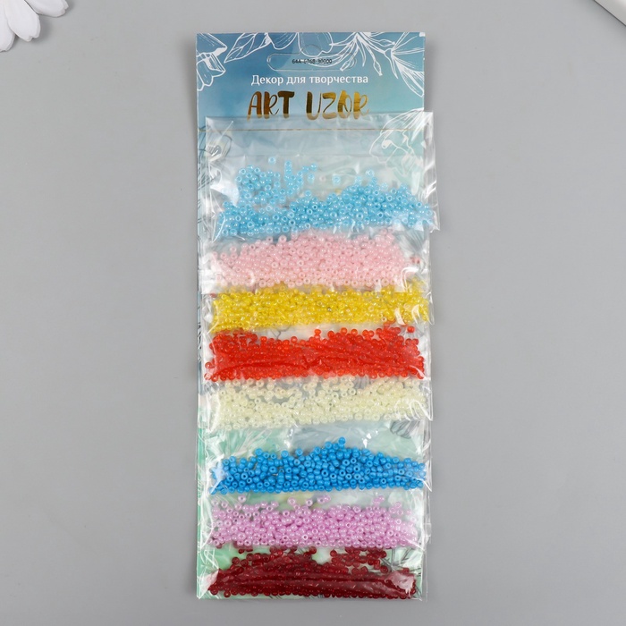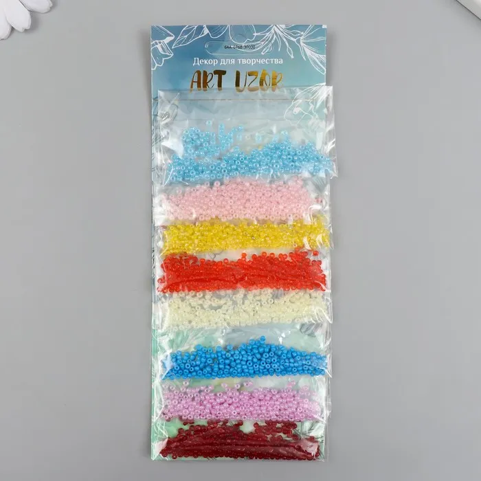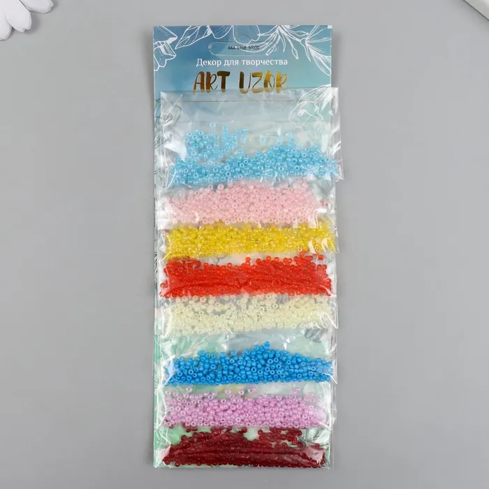 Бисер круглый размер 12/0 «Разноцветный» 8 цветов х 5 грамм 20×8 см — Характеристики