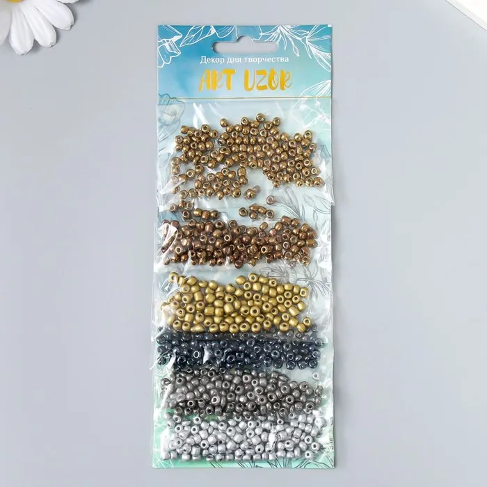 Бисер круглый размер 6/0 «Серебро, золото, бронза и чёрный», 6 цветов × 10 г — Характеристики
