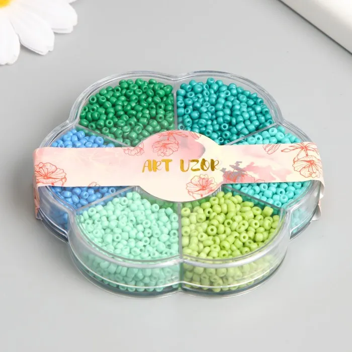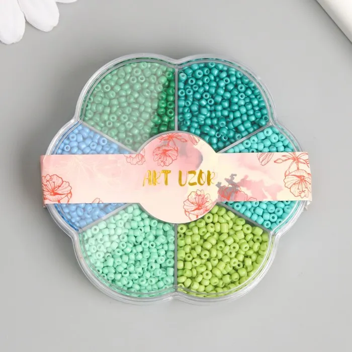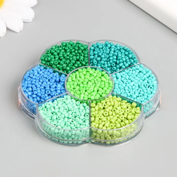 Бисер стекло 12/0 в цветке «Цвета леса», цветной 7 цветов × 8 г, 8.2×8.2×2 см — Характеристики