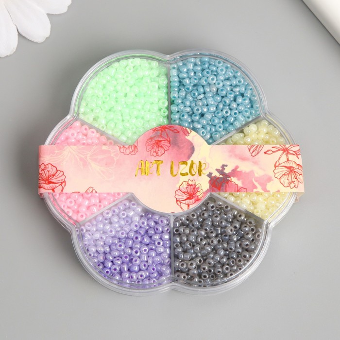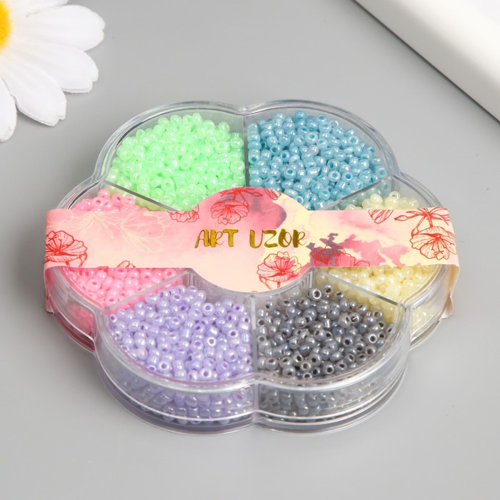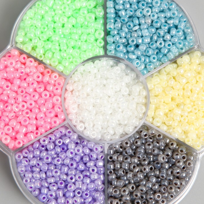 Бисер стекло 12/0 в цветке "Зефирные цвета" цветной перламутр 7 цветов х 8 гр 8,2х8,2х2 см 990499 — Характеристики