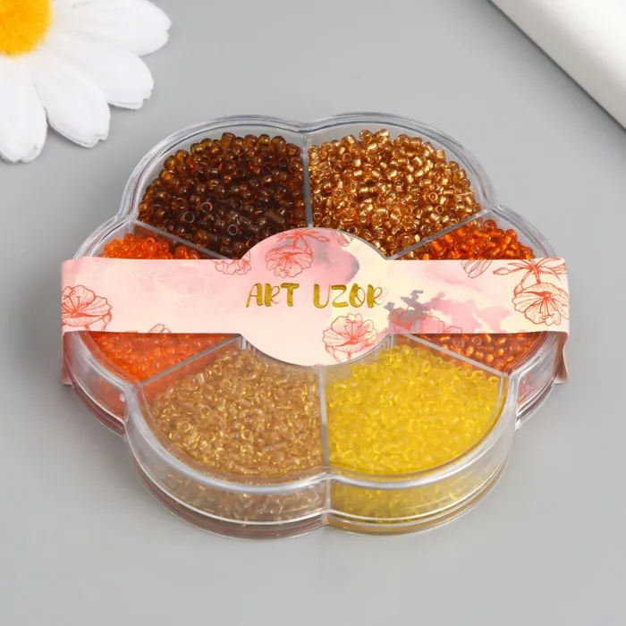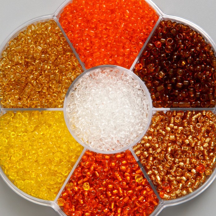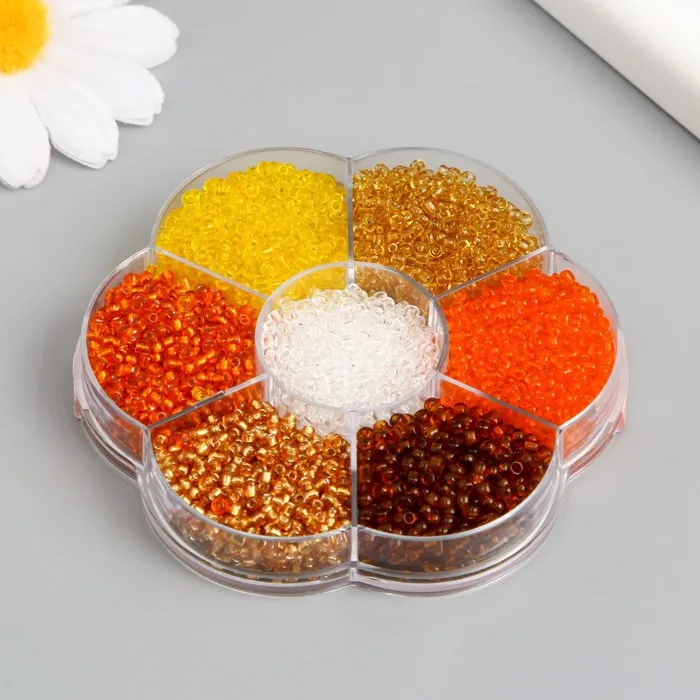 Бисер стекло 12/0 в цветке «Земля», цветной прозрачный 7 цветов × 8 г, 8.2×8.2×2 см — Характеристики
