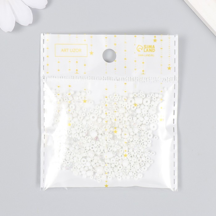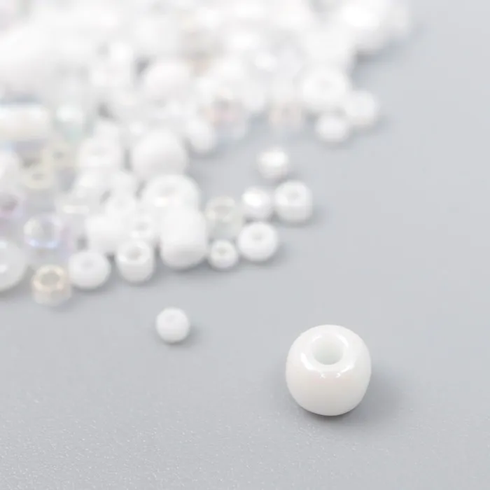 Бисер стекло 6/0 - 15/0 «Ассорти белое», d=1.5-4 мм, набор 10 г