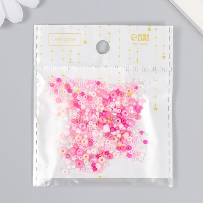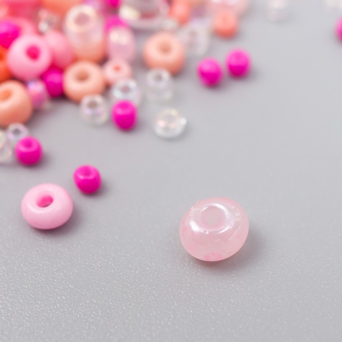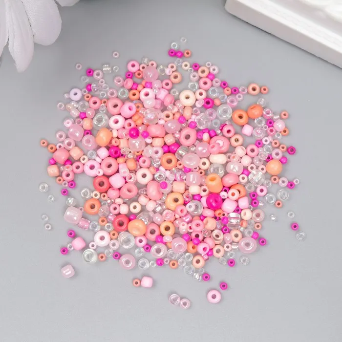 Бисер стекло 6/0 - 15/0 «Ассорти розовое», d=1.5-4 мм, набор 10 г