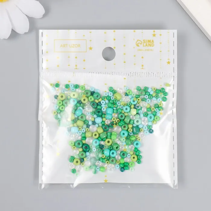 Бисер стекло 6/0 - 15/0 «Ассорти зелёное» d=1.5-4 мм, н-р 10 г — Характеристики