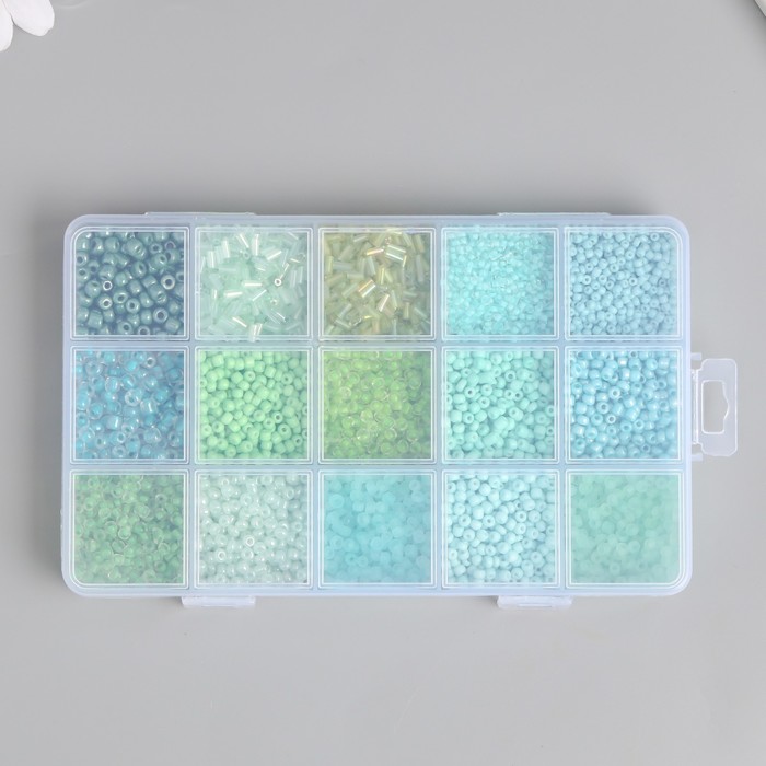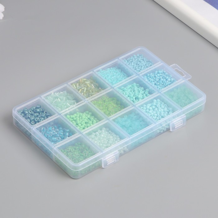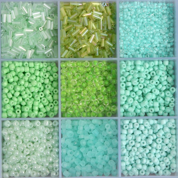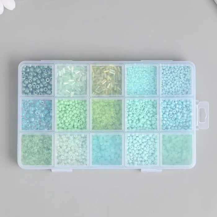 Бисер стекло 6/0, 8/0, 12/0 в шкатулке «Зелёный», стеклярус, 15.5×9.5×1.6 см — Характеристики
