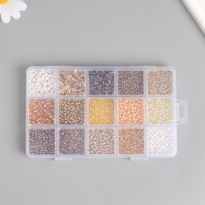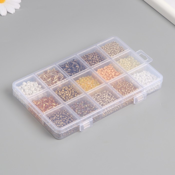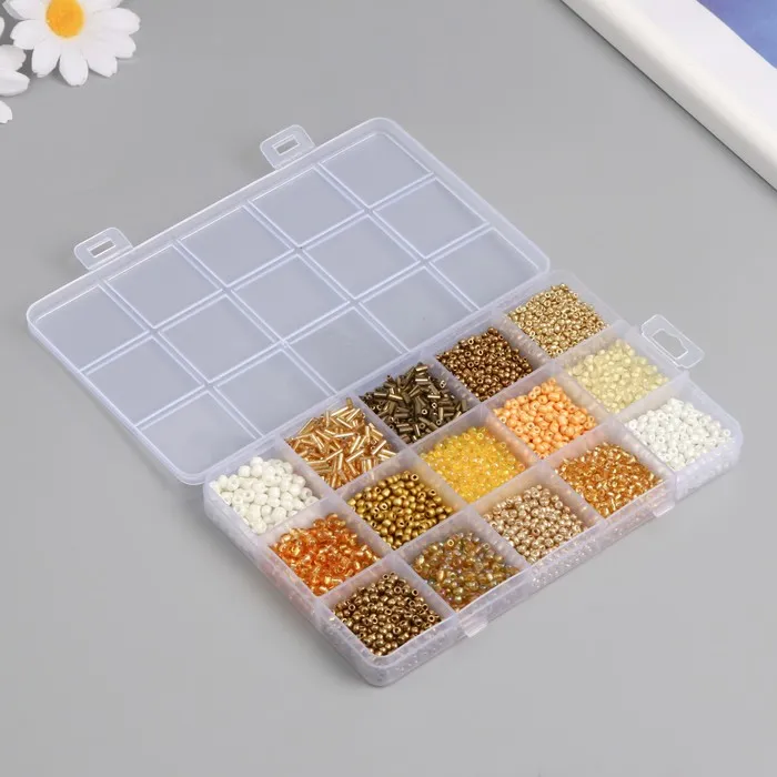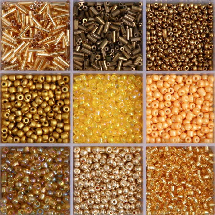 Бисер стекло 6/0, 8/0, 12/0 в шкатулке «Золото», стеклярус, 15.5×9.5×1.6 см — Характеристики
