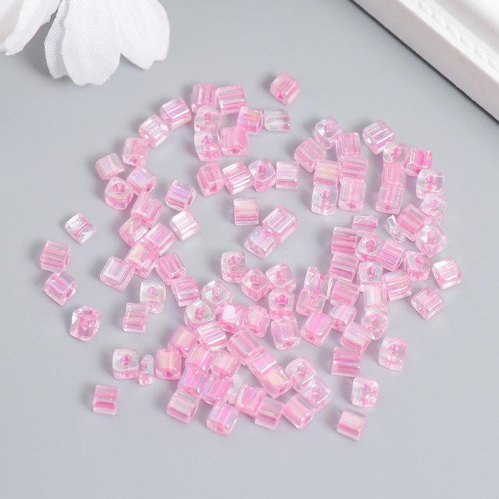 Бисер стекло 6/0 «Кубик. Полупрозрачный. Розовый», 10 г