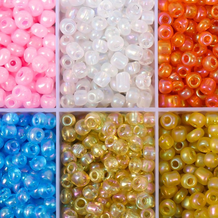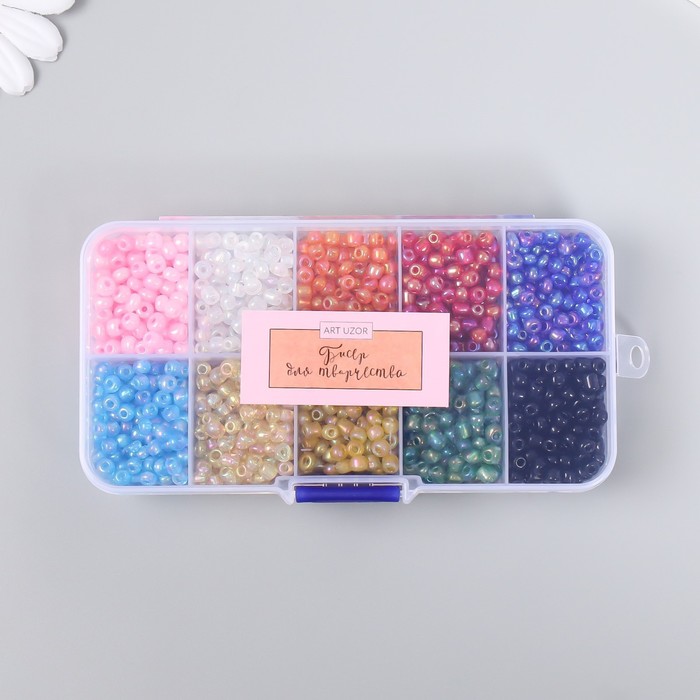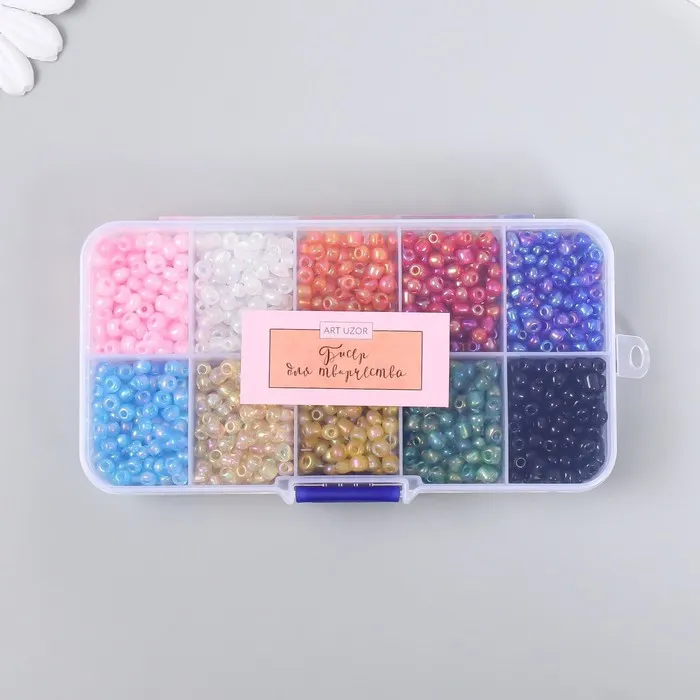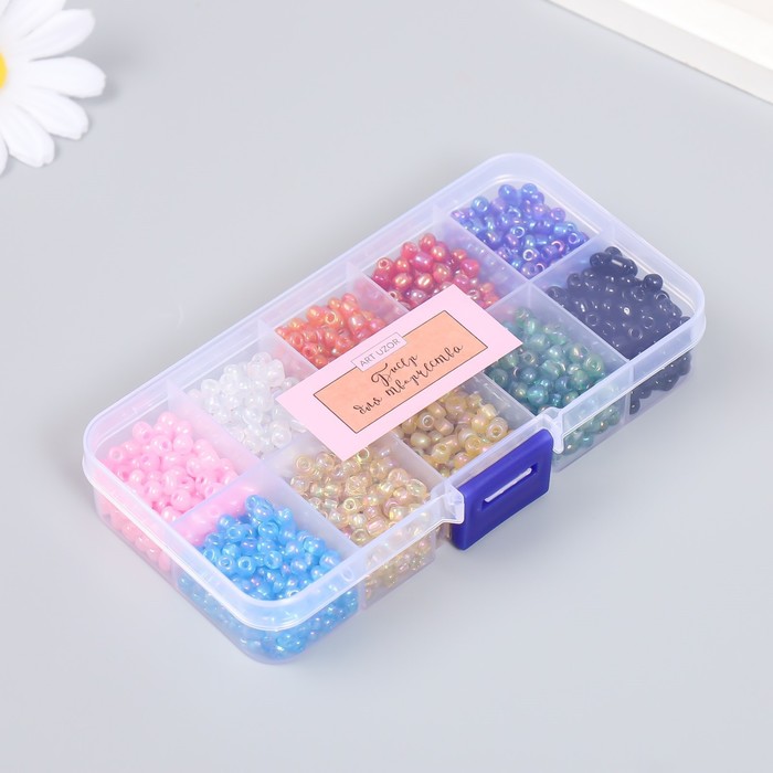 Бисер стекло 6/0 в шкатулке 10 делений «Разноцветный», 1 деление=10 г, 12.8×6.5×2.2 см — Характеристики