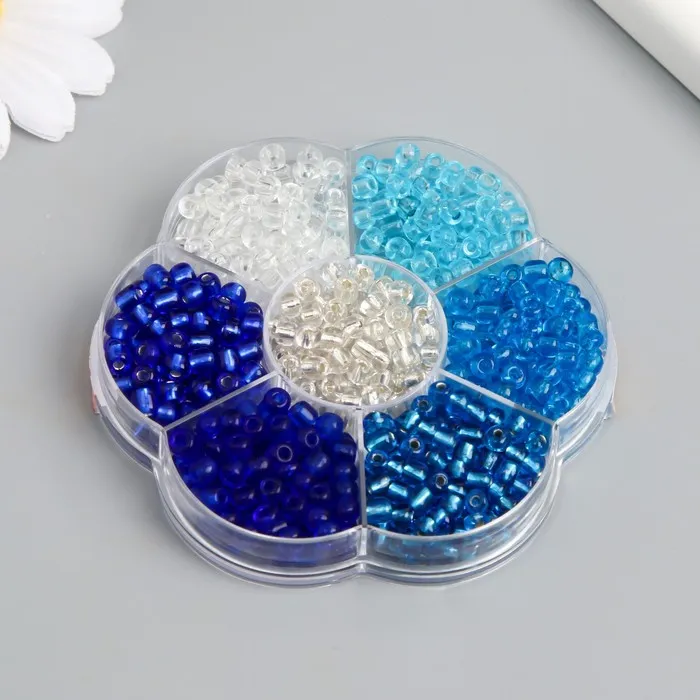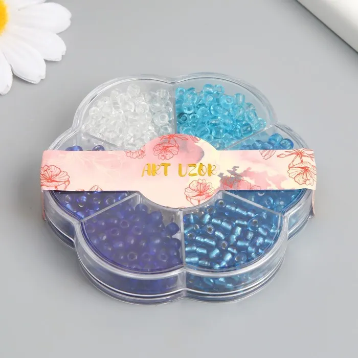 Бисер стекло 6/0 в цветке «Вода» цветной прозрачный 7 цветов х 8 г 8.2×8.2×2 см — Характеристики